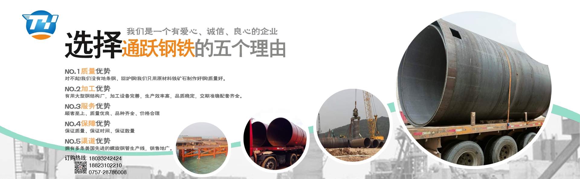 佛山市通躍鋼鐵有限公司 電話(huà)180-2228-4448 0757-28786008 擁有多條美國(guó)先進(jìn)的螺旋鋼管生產(chǎn)線(xiàn),生產(chǎn)直徑φ159-φ3620mm(壁厚6mm-20mm)的雙面埋弧螺旋焊鋼管,年生產(chǎn)能力15萬(wàn)噸。 生產(chǎn)螺旋管 螺旋鋼管 螺旋焊管 規(guī)格厚度6mm-20mm 直徑159mm-3620mm 有多條鋼板卷管機(jī)生產(chǎn)規(guī)格厚度6mm-70mm 直徑400mm-5020mm 螺旋管 螺旋鋼管 鋼護(hù)筒 焊接鋼護(hù)筒 鋼板卷管 丁字焊管 加工格構(gòu)柱 鋼管樁 材質(zhì)Q235B Q345B Q235A 45# 20# Q420D Q390··· ……